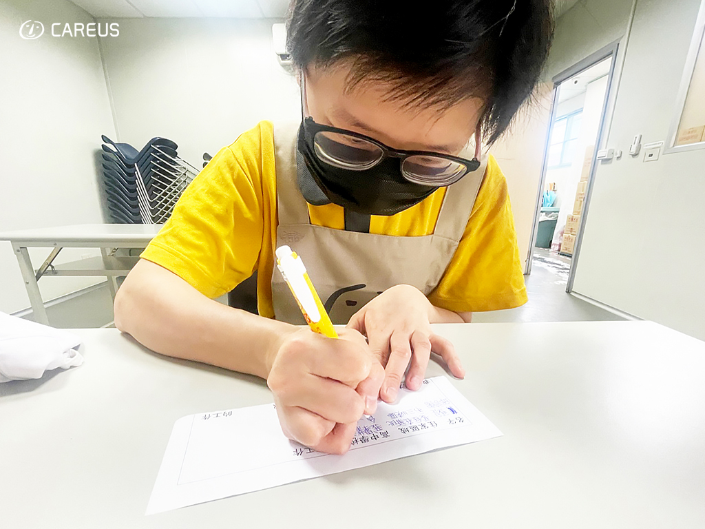憨兒娃娃是一位步調較慢,但擁有清楚目標與認真態度的庇護員工。對門市服務充滿熱情的娃娃,110年在得知基金會舉辦「門市服務技巧課程」時,便主動報名,正式展開「門市服務丙級證照」的挑戰之路!