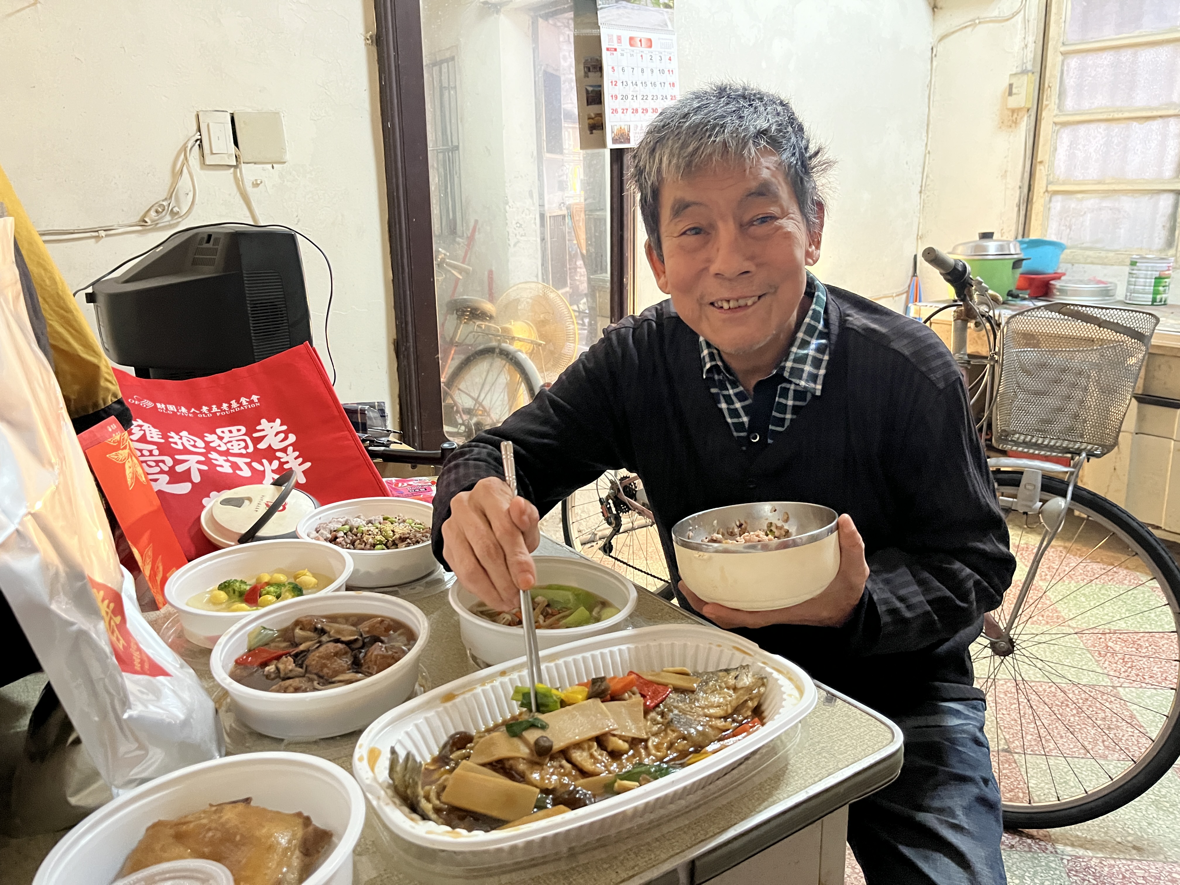 當志工送來年菜時,她驚喜地說:「好久沒吃到這麼豐盛的年夜飯了!」