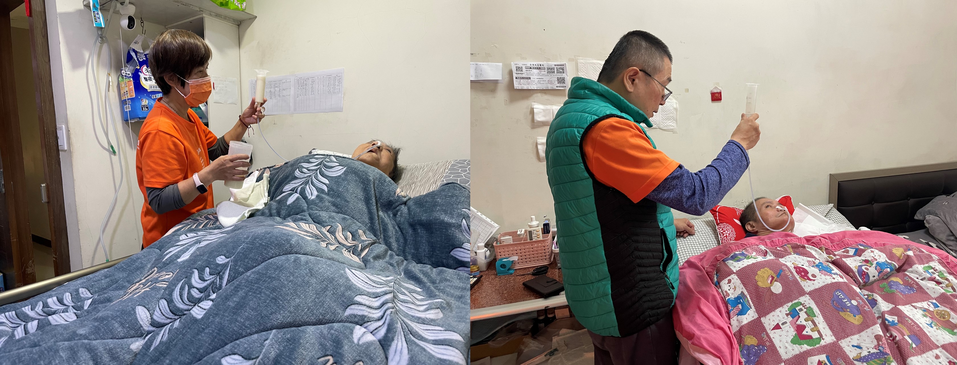 ◆行動、吞嚥困難者:結合志工、照顧秘書平時訪視,不定期補充易保存的物資,有進食、吞嚥困難者將協助餵食或灌食。