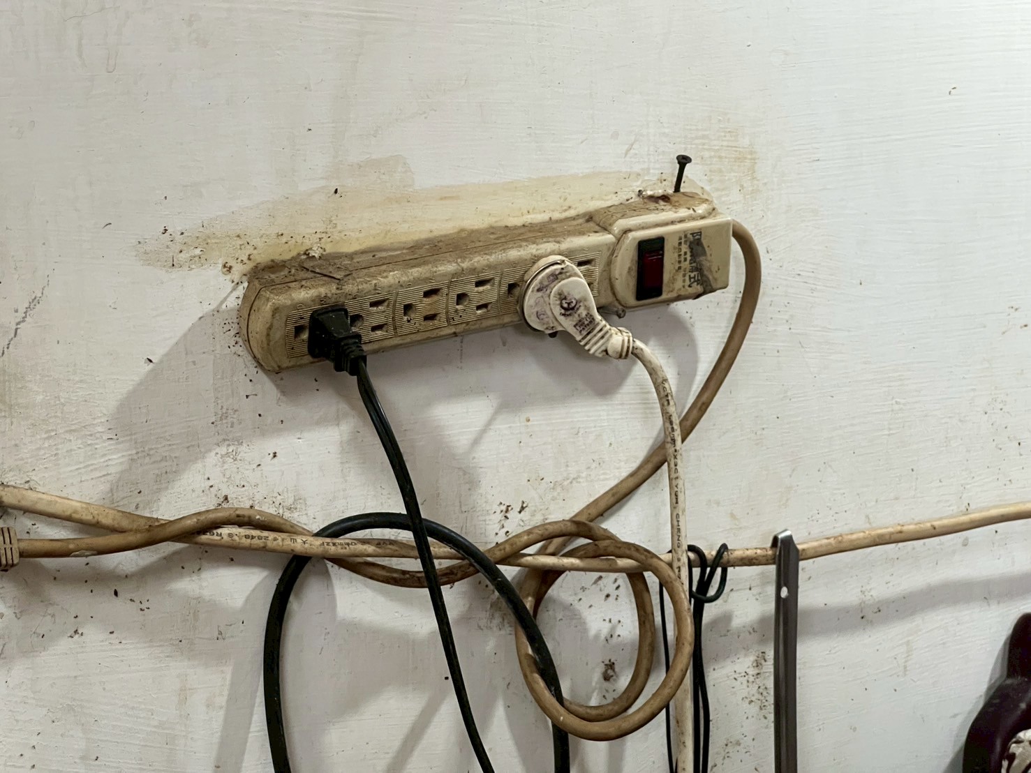 吳伯伯,67歲 ,獨自住在老舊屋中,屋瓦破損、天花板滲水、電線老化。全屋僅靠幾條延長線應付用電,稍有不慎就可能起火。