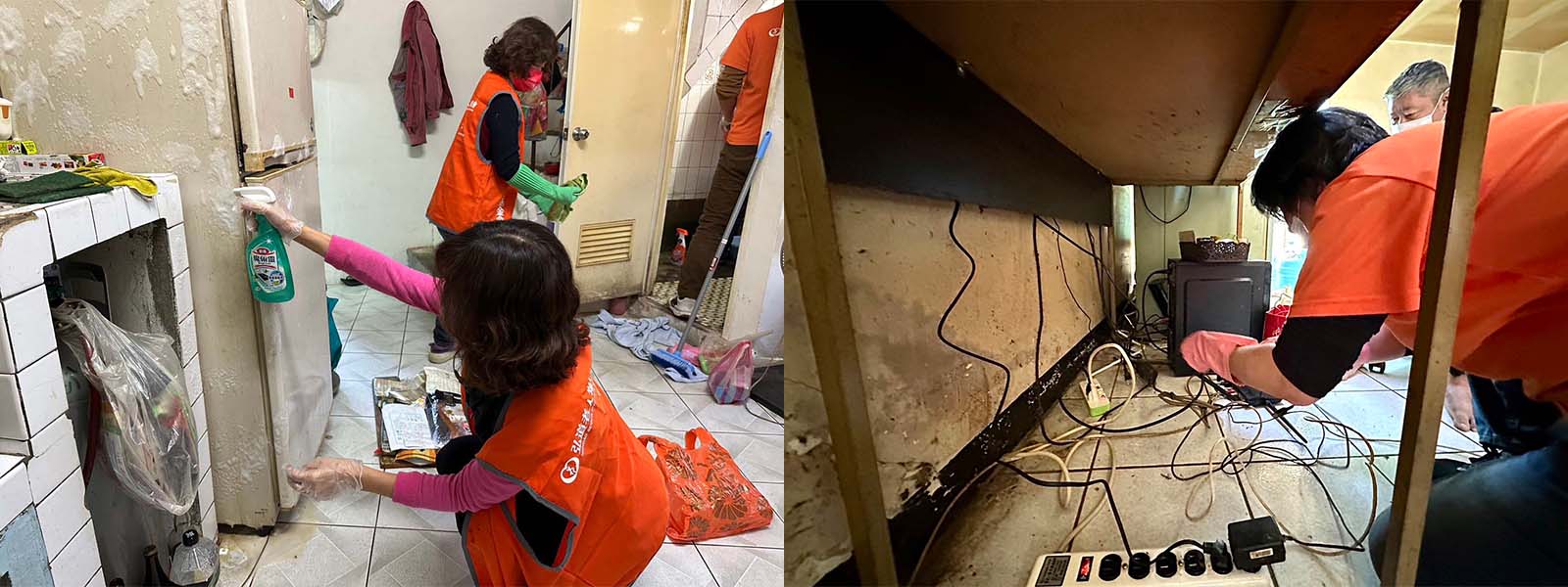 看著家裡的物品積累成了生活的模樣,獨居、年邁的長輩多半無力自行清掃,每當我們展開大掃除,長輩看著弘道夥伴與志工們忙進忙出地打掃,總是頻頻說著「不好意思,麻煩你們了!」,然而,看著長輩眼中流露的感謝與欣慰,所有辛勞都在那一瞬間化作暖意。