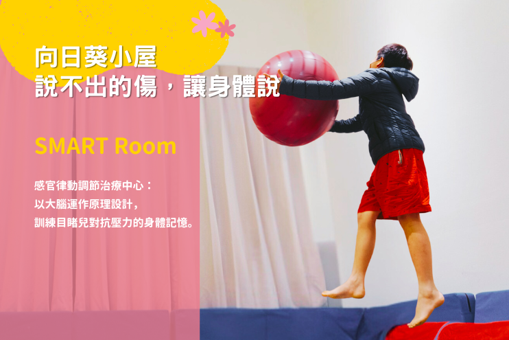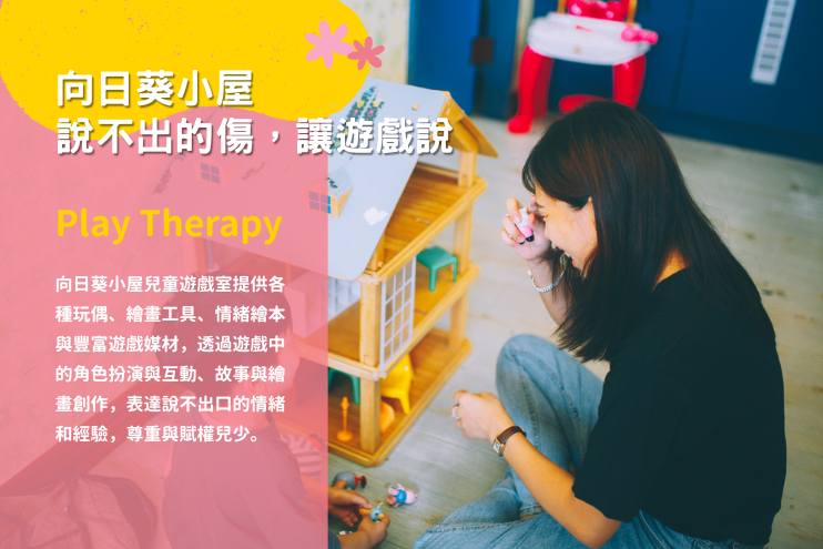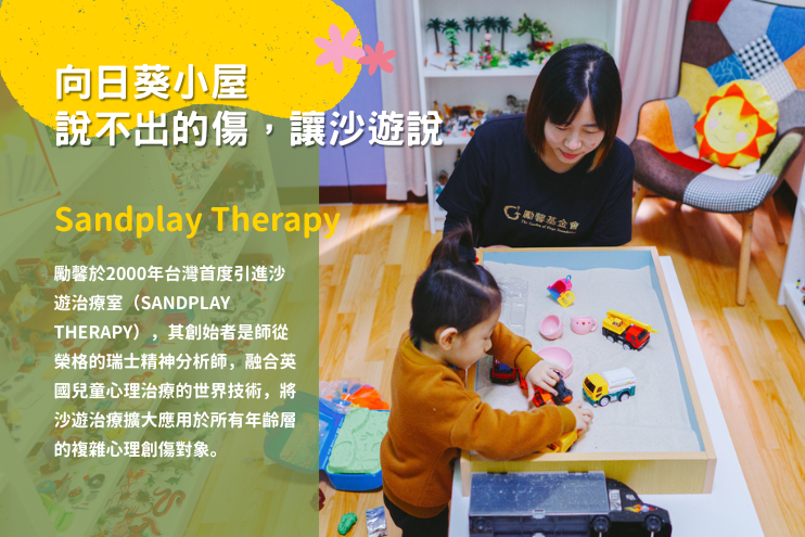 勵馨在2016年首創「向日葵小屋」,為孩子打造一個專屬、安全且安心的空間,透過遊戲治療、沙遊治療、SMART Room 感官律動調節治療等非語言治療方式,協助他們將過往的經驗與情緒投射於遊戲素材中。