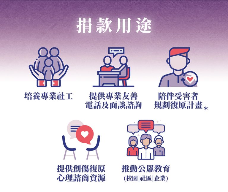 社工會依受害者個別狀況進行專業評估,為受害者連結地方縣市政府、友善心理諮商、法律諮詢、醫療院所等資源,協助受害者踏上創傷復原之路。