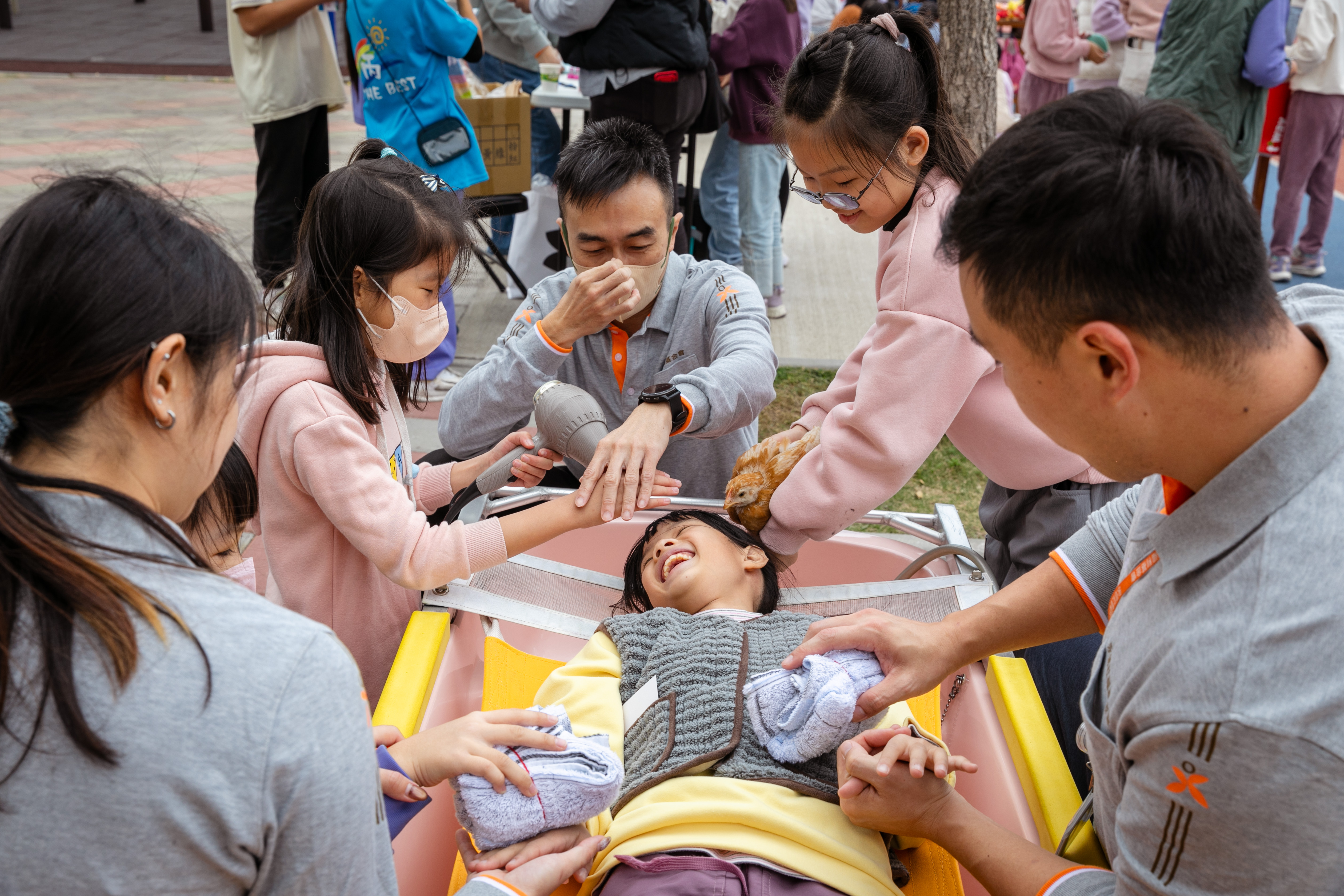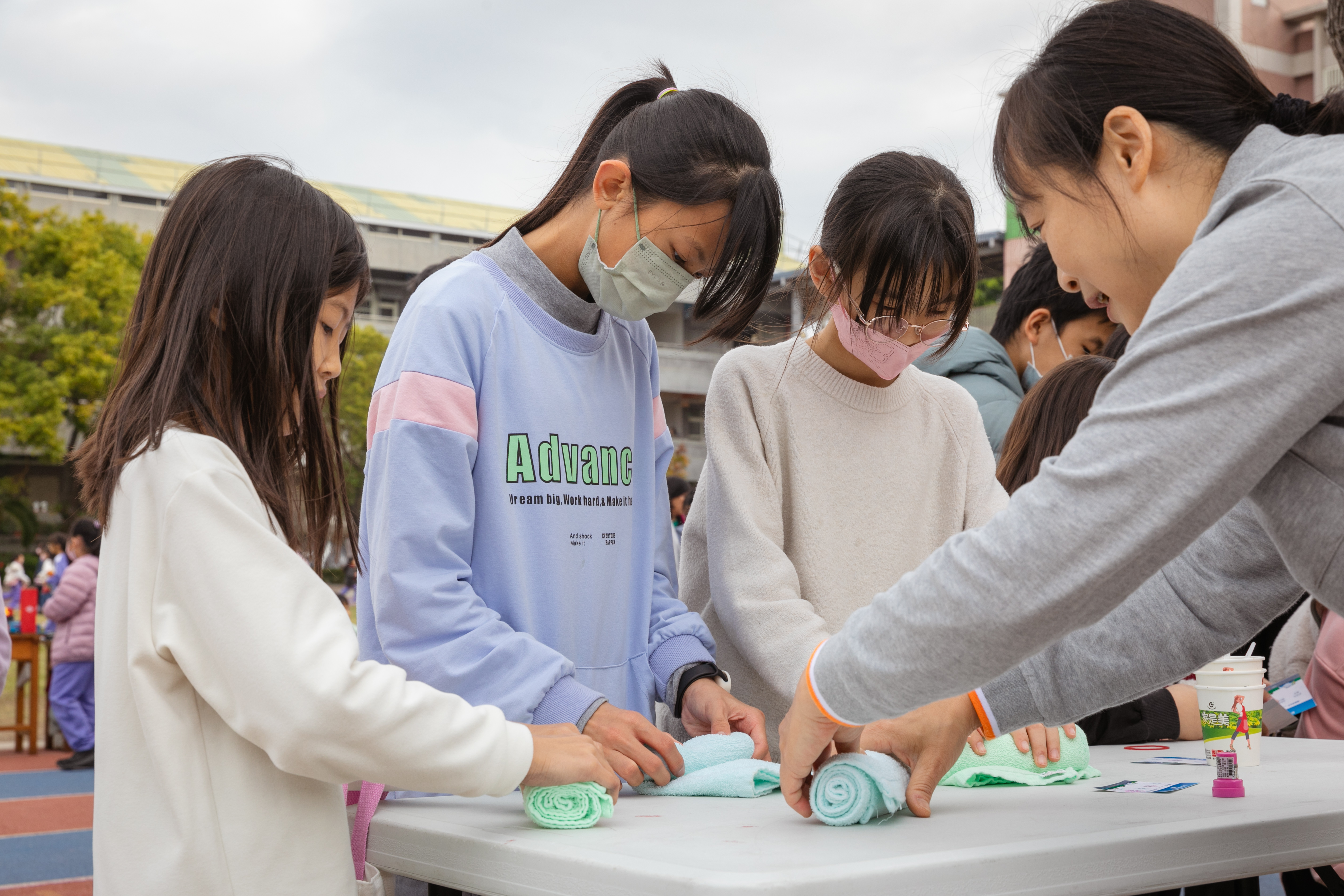 在活動現場亦特別規劃「到宅沐浴小小職人體驗」,邀請約 200 名學童參與「我是折毛巾高手」、「洗香香練台語」及「香草擂茶 DIY」等體驗活動。透過生活技能、語言與感官體驗,引導孩子從「做中學」,認識到宅沐浴服務的專業與重要性,也進一步體會照顧者與父母日常付出的辛勞,培養同理心,將學習轉化為關懷社會的實際行動。