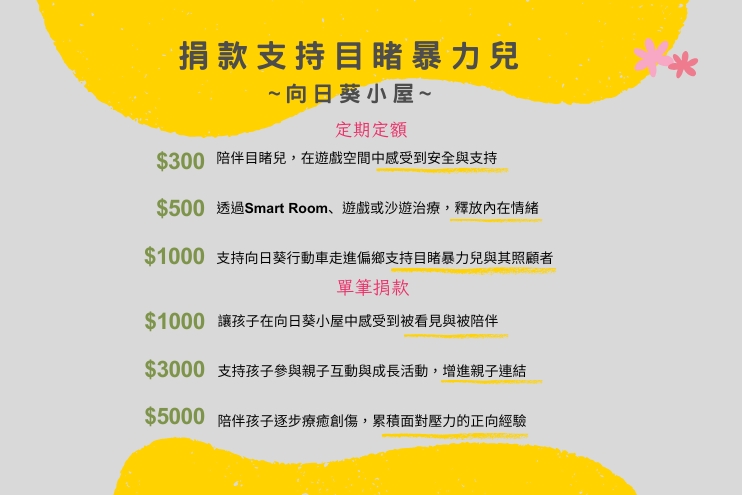 勵馨首創向日葵小屋|您的捐款將幫助勵馨搭建目睹兒的安全基地