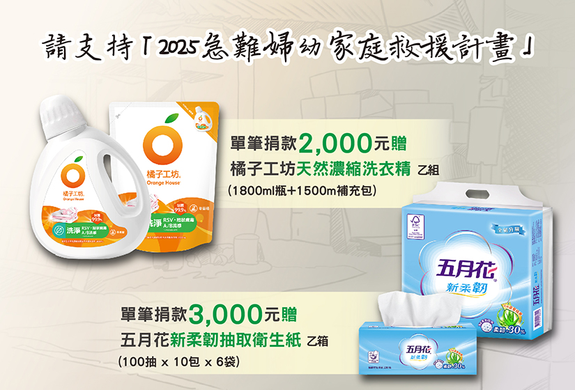 請支持2025急難婦幼家庭救援計畫,勸募善款將即時幫助到遭遇急難變故的中低收入家庭、脆弱家庭缺乏啟蒙資源的孩子、處於身心困境的特殊境遇婦女。