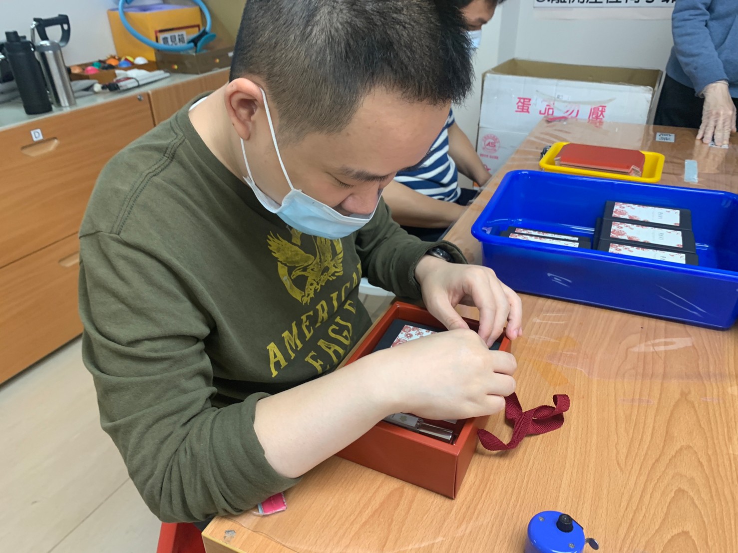 經過學校老師介紹,亮亮接觸了台灣第一個以視多障者為主要服務對象的【萬華視障生活重建中心暨社區工坊】,許多像亮亮一樣的青年都在這裡學習作業技能、生活自理的能力,增加人際和社會的參與,也減輕家庭照顧的負擔。