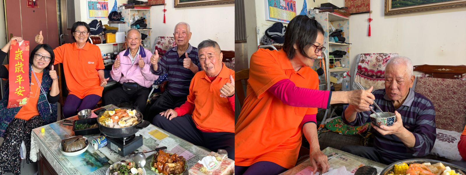 支持1位弱勢獨老圍爐餐費用,除了應景年節服務外,更獲得關懷訪視、送餐、陪同就醫、物資提供等全年度關懷服務。