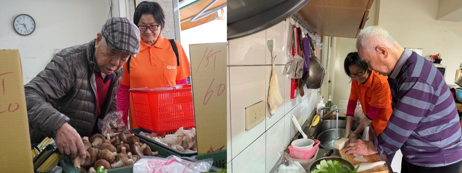 為了讓丁爺爺重拾「總舖師」的風采與重溫家裡圍爐的熱鬧景況,弘道在春節前夕策劃了溫馨小圍爐,帶來豐盛的美味年菜,爺爺親自下廚料理拿手菜「白菜火鍋」和「九層塔炒蛤蠣」,豪邁的說:「過年圍爐就是要吃熱騰騰的好料!」當天一早,志工與社工陪同丁爺爺前往他熟悉的菜市場採買食材。在廚房裡,爺爺從容清理料理,從刀法、調味到熬湯,動作行雲流水,讓在場的志工和社工們都讚嘆爺爺寶刀未老!