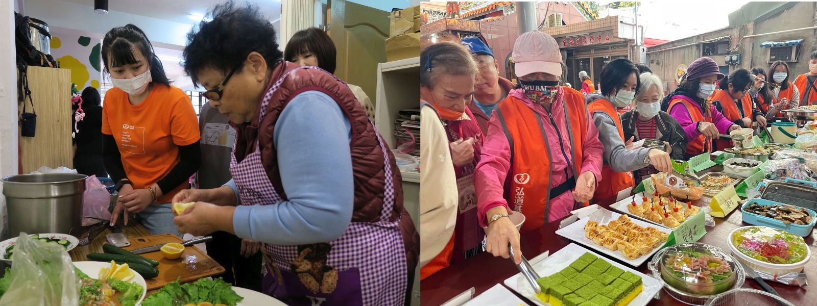 每逢佳節倍思親,弱勢獨老對於農曆年節,始終埋藏著心裡最幸福的回憶與最深的期待,或許是一家團圓、或許是一桌豐富的飯菜。但長輩的家庭、身體或經濟狀態,都有無法達成願望的限制,年節時情緒特別容易低落。弘道規劃「歲末圍爐餐」,透過「最熟悉的人」,長期陪伴獨老的志工、社工,在長輩的家「最熟悉的地方」共享圍爐餐,能有效降低弱勢獨老在過年期間心理的孤獨,提升幸福感,讓獨居長輩展露笑容。
