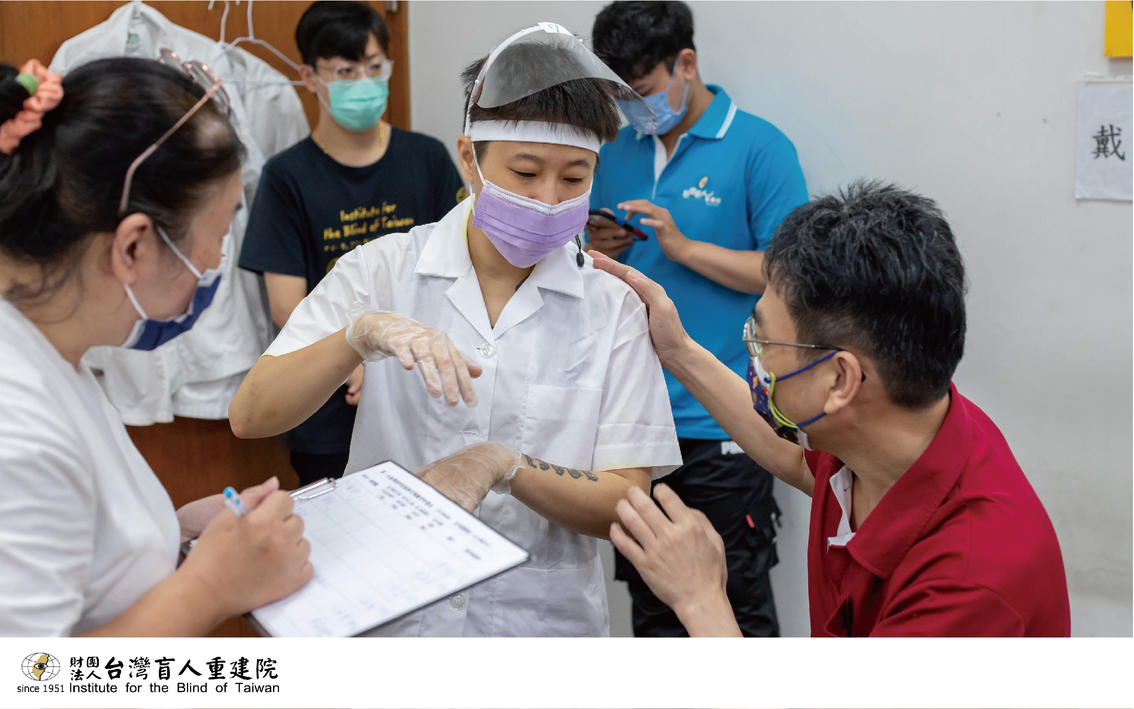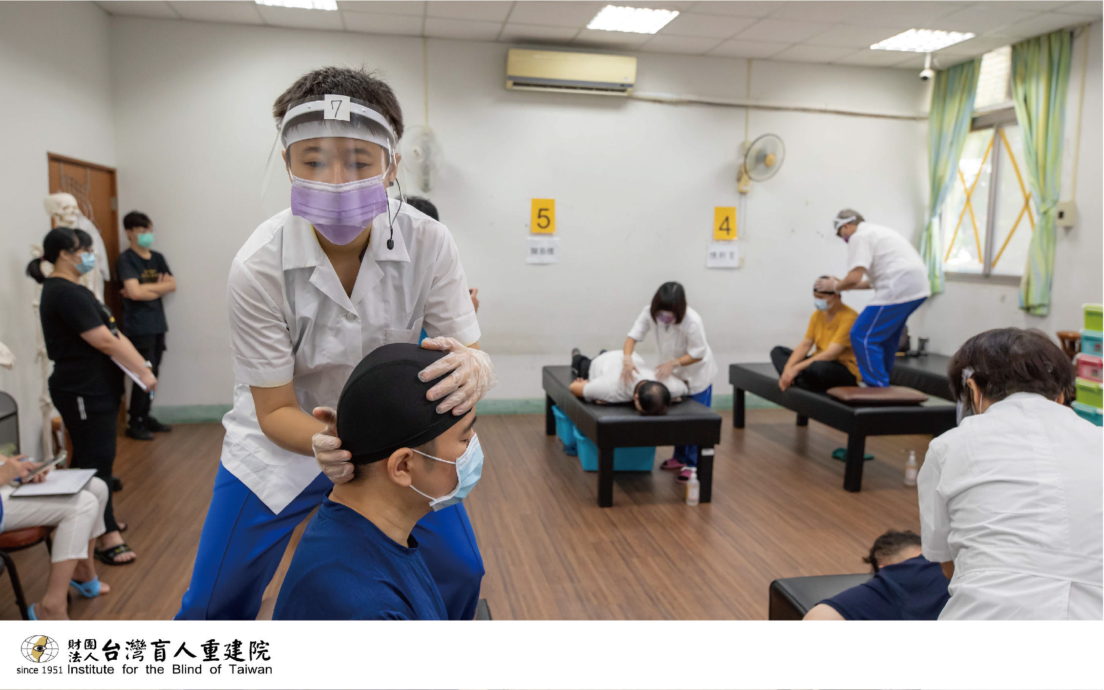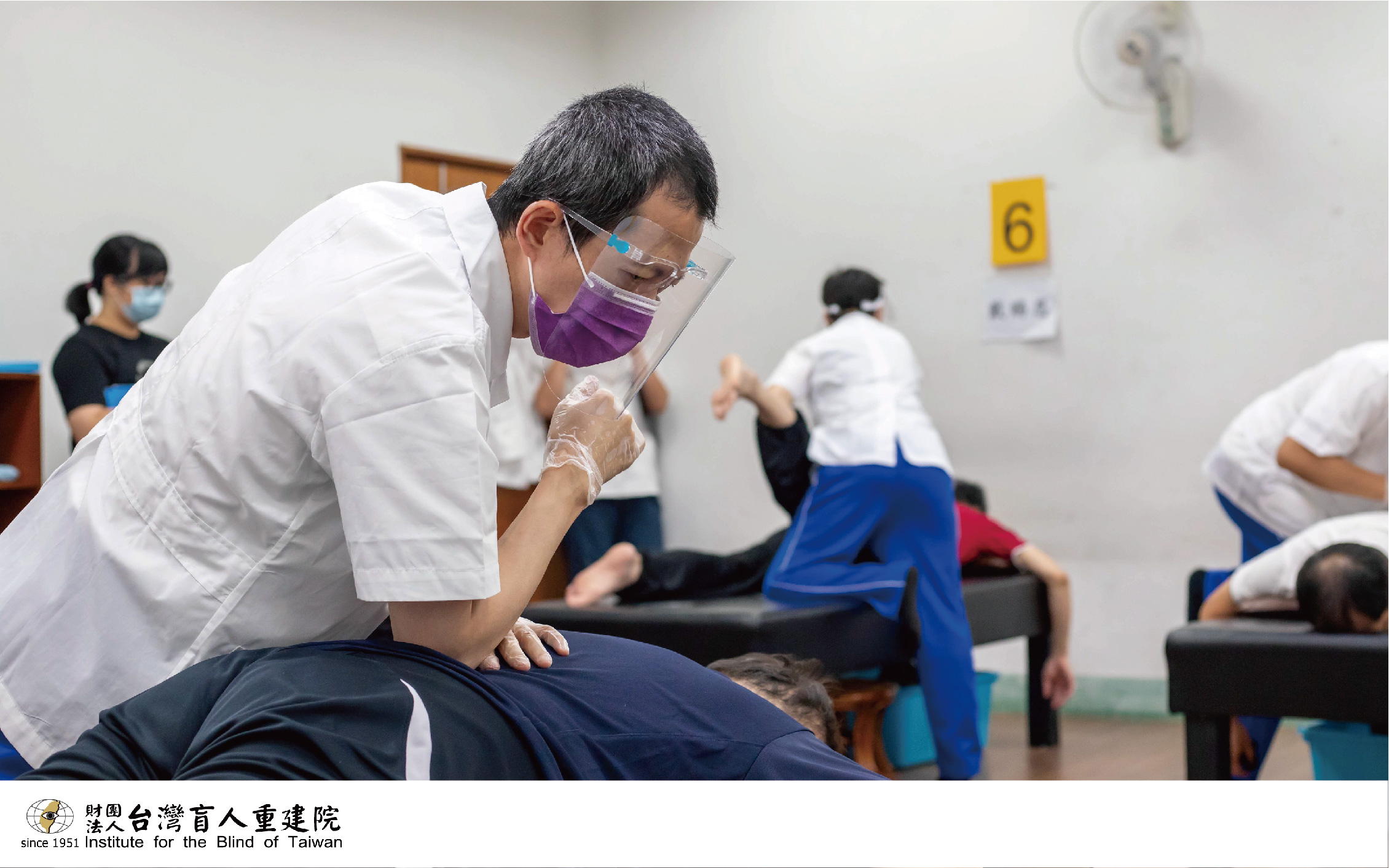 重建院教導來到機構的視障者,學習生活獨立、習得一計之長、自給自足並重新與社會接軌,藉由自己的雙手再次重拾希望迎向嶄新人生,學習期間本院免費提供住宿、師資及餐點,讓視障者可以無後顧之憂安心學習,職業訓練課程為其9個月/1200小時,課程中視障者能學習一技之長(專業按摩技巧),並輔導考取丙級按摩技術士證照,考到證照後也將安排到職場實習,讓視障者一畢業馬上就能進入職場上班,照顧自己穩定就業再次承擔養家的責任,重新回歸社會。