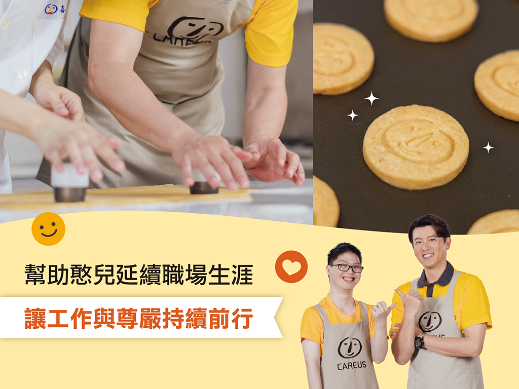 基金會全台專業社工、就服員及數位科技微笑接力,幫助憨兒延續職場生涯,讓工作與尊嚴持續前行,走得更穩、更久。