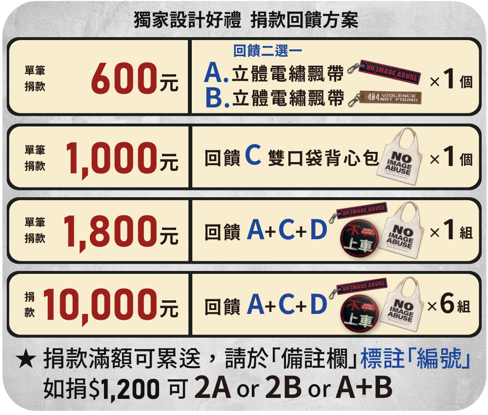 ★ 捐款感恩禮非義賣品,本會保有變更、調整之權利。贈禮顏色拍照略有差異,請以實品為準。