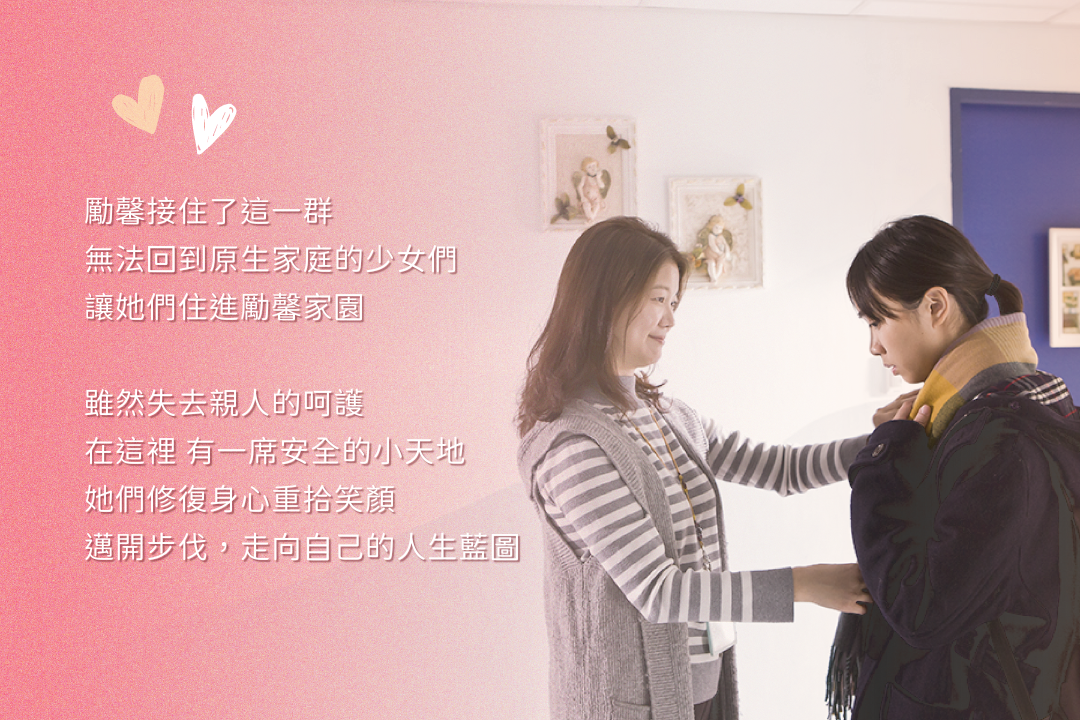 勵馨基金會從1988年開辦第一個少女安置家園「勵馨園」,一直以來致力於提供少女們一個療育與成長的環境,讓這些少女即使離開家,也能夠感受到家的溫暖,並能受到良好的生活照顧與培養自立生活能力,幫助她們走出創傷,重拾自信,邁向未來。